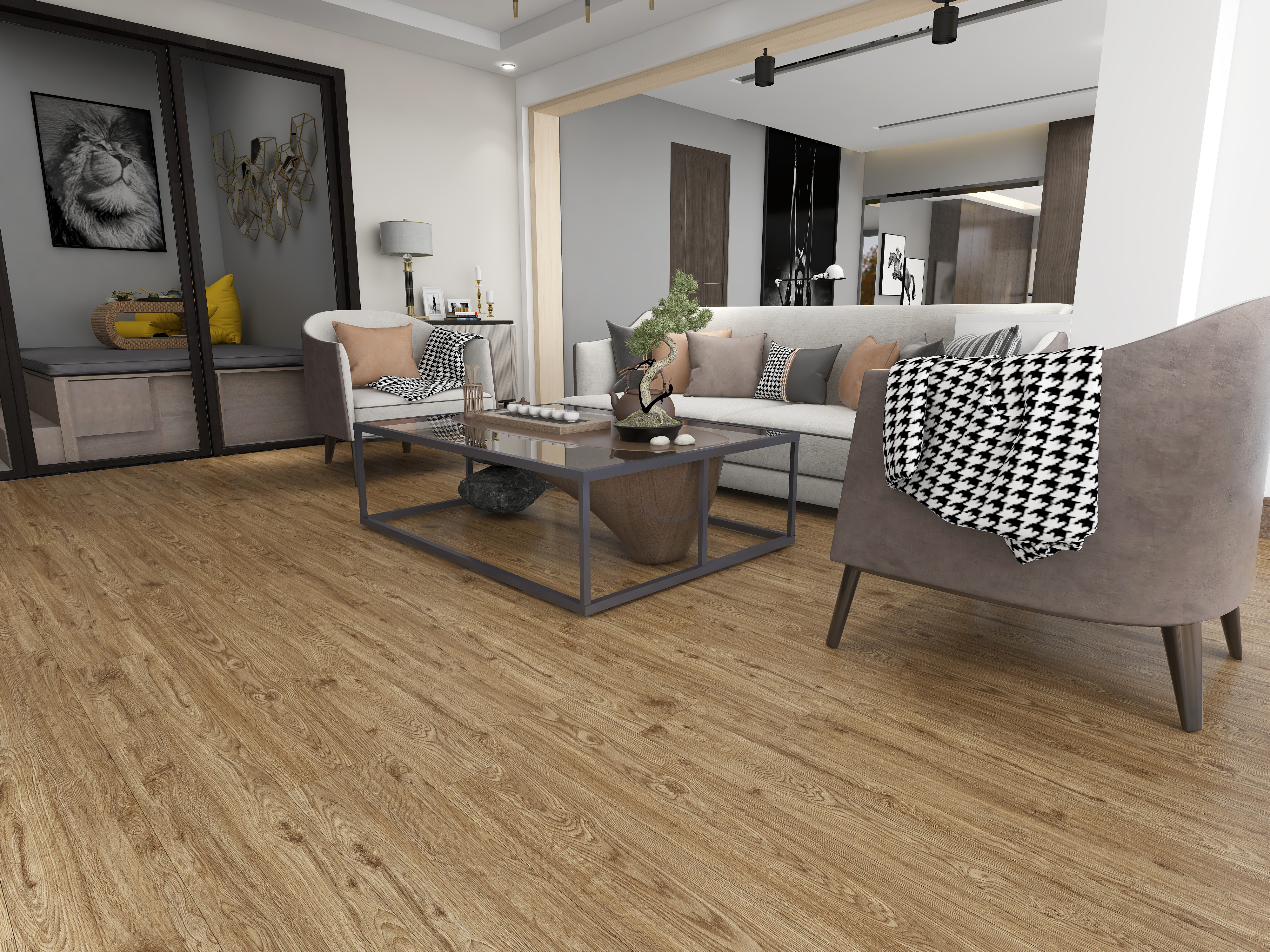 The wood grain series is divided into light embossed,deep embossed,real wood surface,crystal surface and hand scraped.SPC flooring wood surface inheriting the classic beauty of real wood .Wood grain is a variety of natural and beautiful patterns that are naturally formed, giving people a sense of movement, and humans have a natural intimacy to them, which makes people get a kind, peaceful and quiet feeling when they see wood grain patterns. comfortability. Wood grain patterns are used for interior decoration, and they are enduring for a long time.